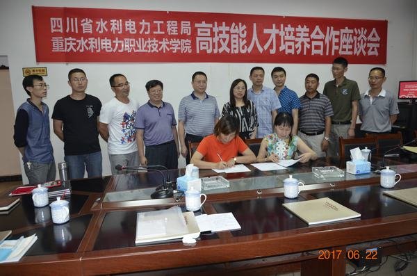 6月22日,重慶水利電力職業(yè)技術學院陳曉耘副院長率學院人事處張洪英處長、水利系肖主任、建筑系汪主任等一行,到工程局毗河引水工程項目部鄭家渡槽施工點、小巖寺隧洞施工點現場實地參觀考察,并就加強人才培養(yǎng)、實踐教學、技能指導、學生招聘等校企合作進行了友好協商,雙方本著資源共享、優(yōu)勢互補、相互協作、互惠互利、共同發(fā)展的原則,簽訂了《校企合作協議書》,同時,重慶水利電力職業(yè)技術學院特聘我局全國水利行業(yè)首席技師李春桃同志為學院技能導師,并與李春桃同志簽訂了《技能導師聘任協議書》。