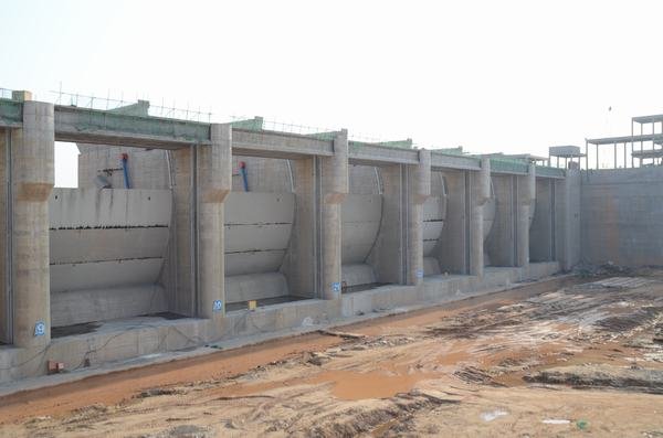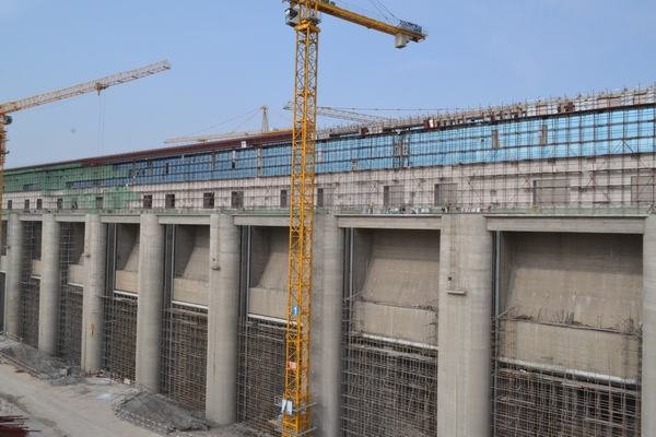 廠房前流道船閘下游公路橋蓋梁攔污柵閘墩下游魚(yú)道閘壩