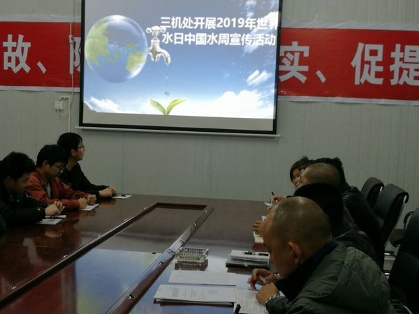 項目部召開世界水日、中國水周活動宣傳會議,切實貫徹落實“堅持節水優先,強化水資源管理”的宣傳主題,同時,通過QQ群、微信群,在工地懸掛橫幅、宣傳版畫以及發放節水知識宣傳單等方式向項目員工傳達世界水日、中國水周宣傳內容,開展世界水日、中國水周咨詢活動,解答大家提出的問題。