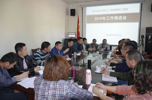 4月7日上午,第四工程處在毗河項目部會議室召開2019年二季度工作推進會,會議由局長助理、四處處長茍仕聰主持,處級領導、各部門負責人及財務、機供科職工共計20人參加會議。