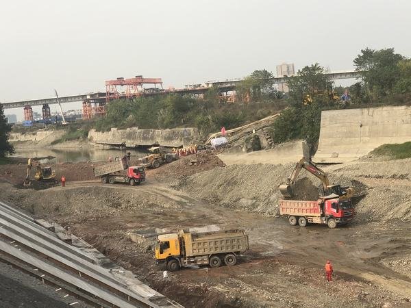 演練背景:某日,沱江上游突降大雨,上游毗河、中河、北河水庫(kù)、水電站相繼削峰泄洪,導(dǎo)致北河河床水位上漲。項(xiàng)目部接到通知后安排專人到右岸堤防施工區(qū)域值守,監(jiān)測(cè)河床水位和圍堰穩(wěn)定情況。局鑫宏公司經(jīng)理毛偉接到項(xiàng)目部報(bào)告后,向項(xiàng)目部副經(jīng)理張靜下達(dá)立即啟動(dòng)應(yīng)急工程救援預(yù)案響應(yīng),組織搶險(xiǎn)一隊(duì)人員配合機(jī)械設(shè)備對(duì)上游圍堰進(jìn)行加高培厚……,鑒于水位快速上漲圍堰可能會(huì)出現(xiàn)漫壩潰壩情況,項(xiàng)目部決定救援二隊(duì)人員跑步到達(dá)現(xiàn)場(chǎng)增援搶險(xiǎn)……,以及對(duì)受傷人員的救護(hù)和人員、設(shè)備撤離等場(chǎng)景。