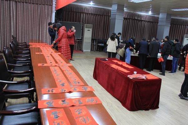 省水利廳黨組成員、廳直屬機關黨委書記趙斌,省總工會二級巡視員翟建平,省水電工會主席馬勇仕,省水電工會副主席吳平勇一行出席活動。工程局黨委書記、局長鄔清富,黨委委員、常務副局長董蜀良,黨委副書記、工會主席代勇,黨委委員、紀委書記唐驚濤參加活動。在機關附樓大會議室,三位書法專家揮毫潑墨,行書、隸書、楷書、草書等不同字體、不同風格的對聯從書法專家們的筆下如行云般流出,或遒勁有力,或飄逸俊秀,或神采飛揚,一幅幅春聯寓意著吉祥,傳遞著新春的祝福,讓廣大職工真切感受到了濃郁的傳統文化氣息。翰墨的清香頗受職工們的歡迎,大家一邊欣賞書法技藝,一邊品評春聯寓意,不時地稱贊,喜悅之情溢于言表。在近兩個小時的活動中,大家爭先恐后向書法專家們索要墨寶,現場書寫的近百幅春聯和福字被紛紛領取。