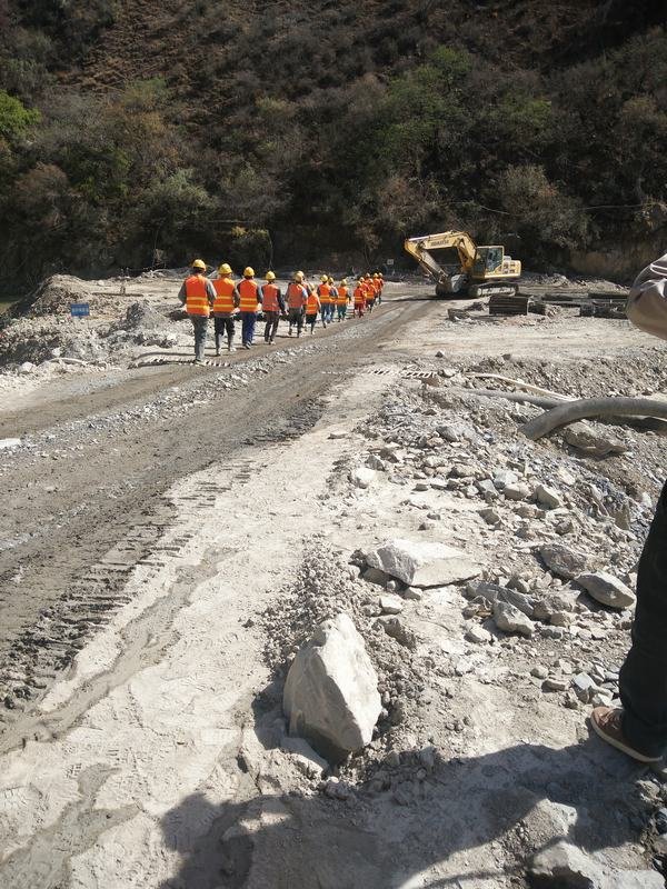 上午9:30,在指揮長甘曉華的號令下,演練活動正式開始。副指揮長鄭中華就暴雨強度、水位情況以及近期氣象情況做了簡明扼要的匯報,宣布啟動防洪應急預案。此次活動,模擬了洪水到來前組織壩上作業(yè)人員、施工機械設備的安全撤離,以及材料物資的搶險和安全轉(zhuǎn)移、上游圍堰填筑加固、搶險人員受傷救助等情景。在防洪警報拉響后,大家都保持著高度的警惕性和嚴肅性,壩上作業(yè)人員在應急小組長丁忠洪的安排下井然有序地快速撤離,迅速撤離到安全避險區(qū)。在基坑物資搶險轉(zhuǎn)移、圍堰加固、傷員救助演練中,大家都嚴陣以待、爭分奪秒、團結(jié)協(xié)作,表現(xiàn)出了一種難能可貴的團隊精神。