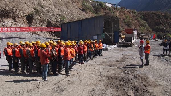 近期,降雨頻繁,水洛河水位持續上漲,防汛工作形勢嚴峻。華電國際水洛河公司高度重視,專門召開會議對本年度《防洪度汛、搶險救災工作》進行再動員、再部署、再落實,并要求各單位成立搶險救援突擊隊。5月12日,鑫宏公司所承建的新藏項目部結合《四川省水利電力工程局新藏電站引水隧洞Ⅲ標工程2016年防洪度汛應急救援預案》、《新藏電站引水隧洞Ⅲ標工程防洪度汛演練方案》及本標工程2016年防汛工作的實際情況,由項目部和各施工班組組成搶險救援突擊隊,在8#支洞施工現場組織開展防洪搶險應急救援及人身傷害演練活動。建管部、監理部的有關領導和相關兄弟單位負責人觀摩了此次演練活動。