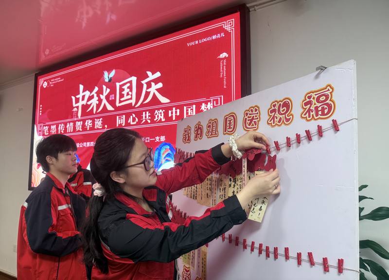 筆墨傳心意,同心賀華誕。在“我為祖國送祝福”環(huán)節(jié),現(xiàn)場氣氛熱烈而溫馨,每位職工懷著對祖國的深切熱愛,在祝福卡片上認真書寫心中的祝福與期盼,并將卡片粘貼在祝福墻上,讓一張張卡片匯聚成紅色的“祝福矩陣”,為祖國獻上最真摯的禮贊。
